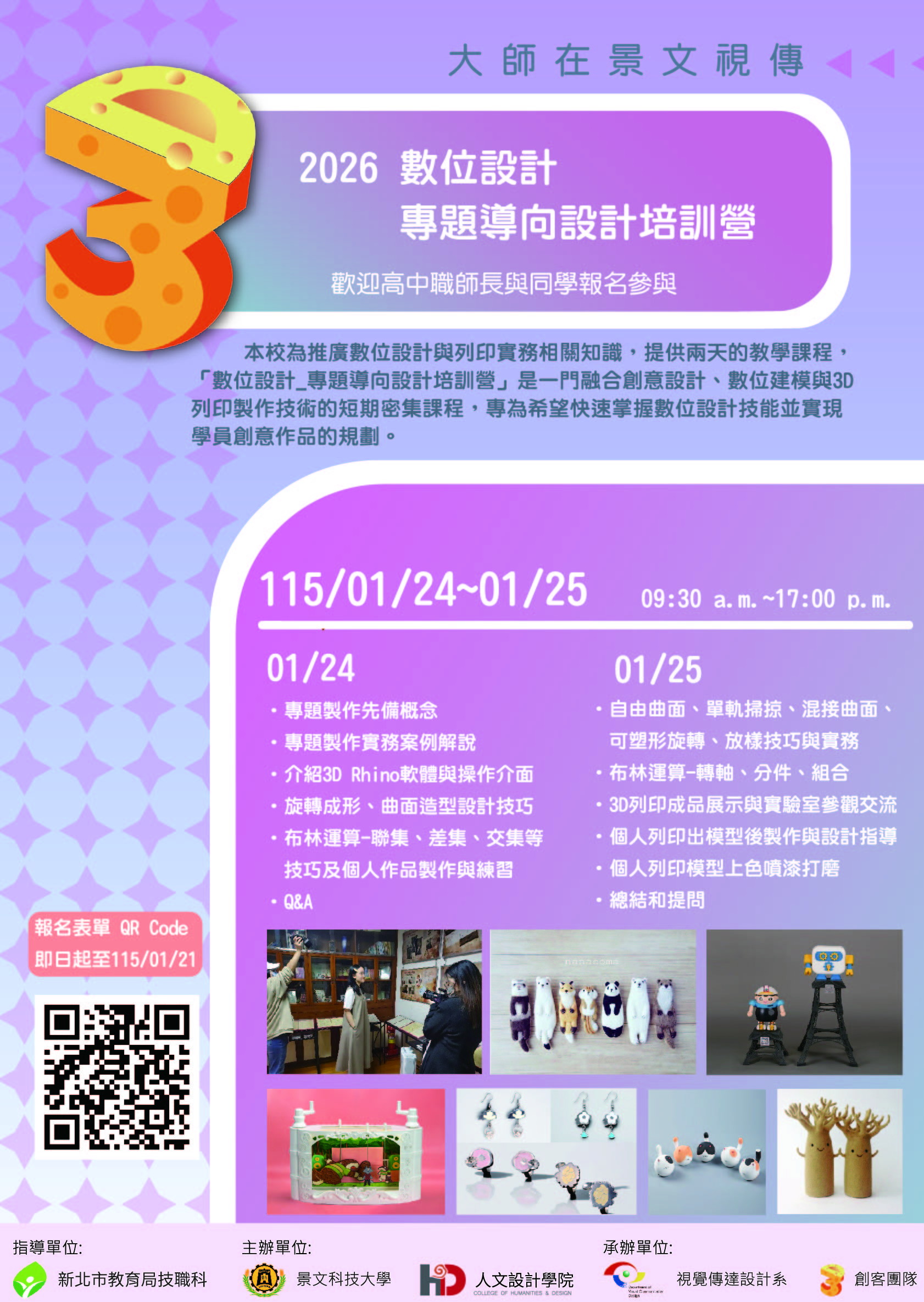 【轉知】景文科技大學「115年高中、高職等學校3D數位設計_專題導向設計培訓營」實施計畫
