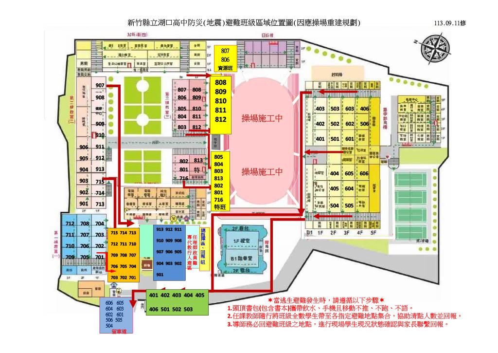 因應操場重建規劃,本校防災(地震)避難班級區域位置圖