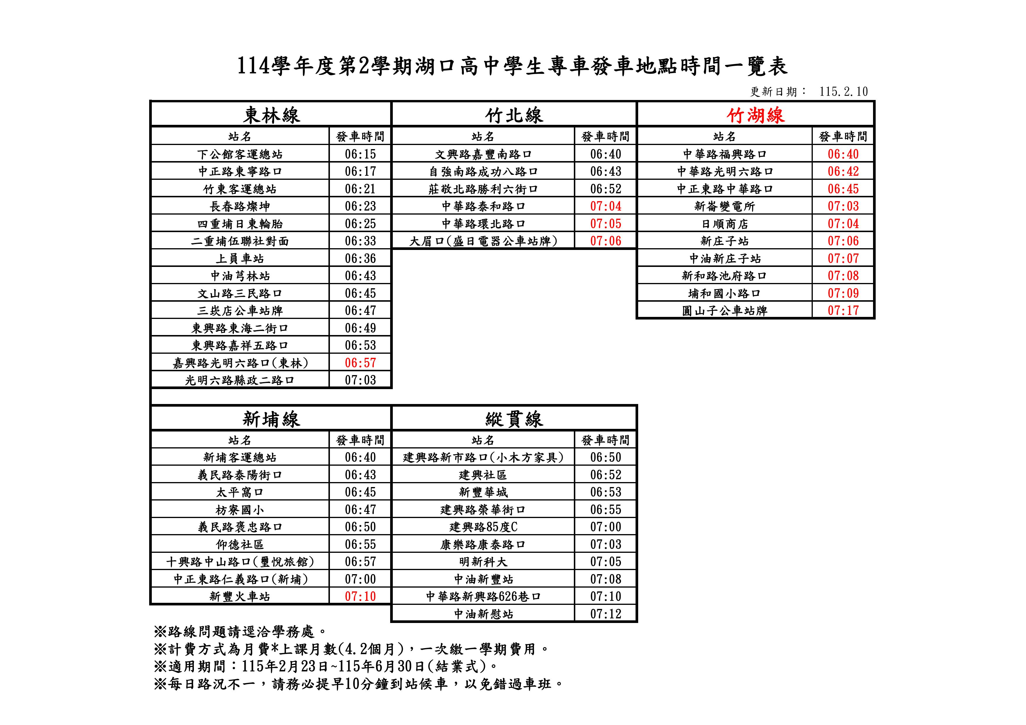 【重要】114學年度第2學期學生專車異動第二次公告(2/23開始)