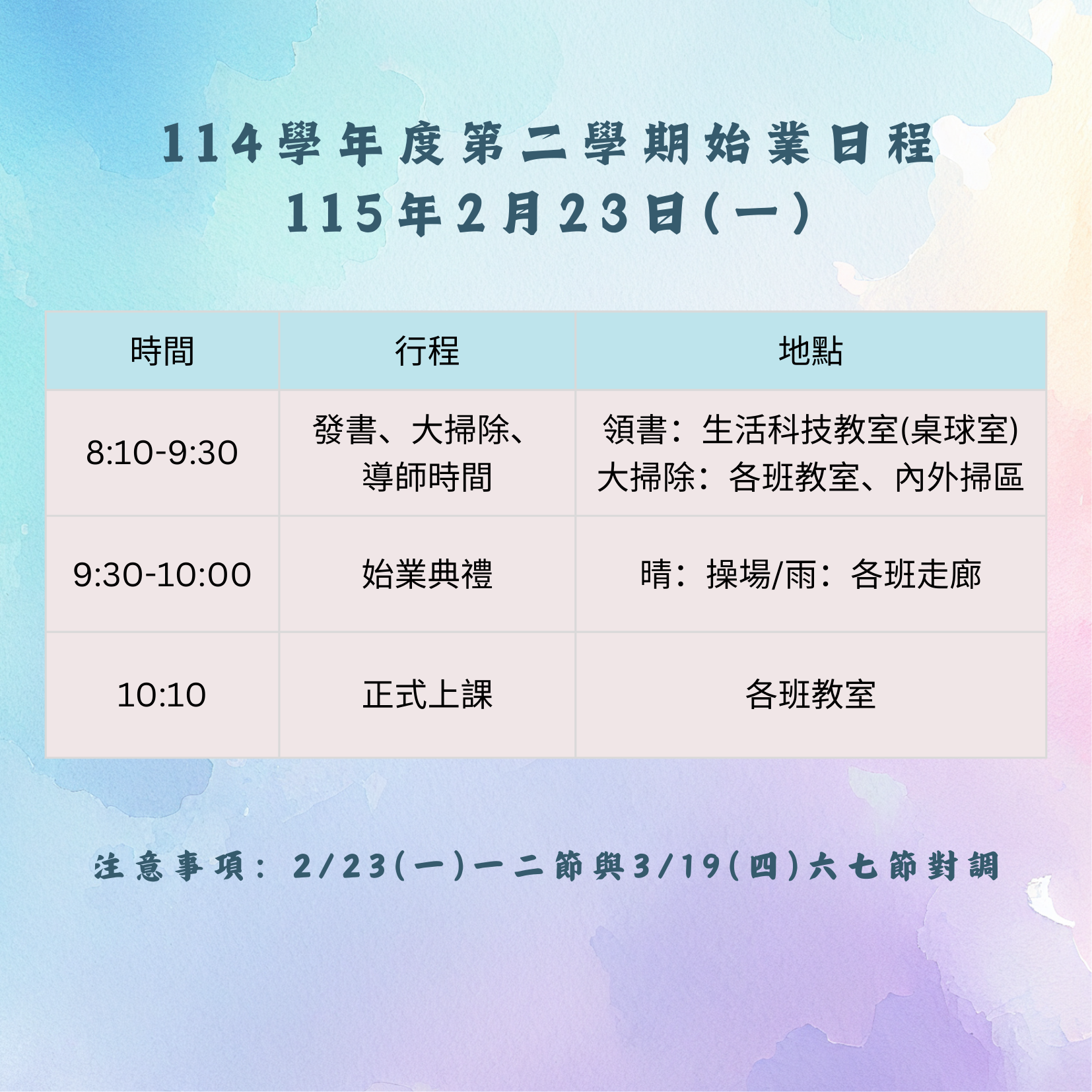 【重要】開學日流程